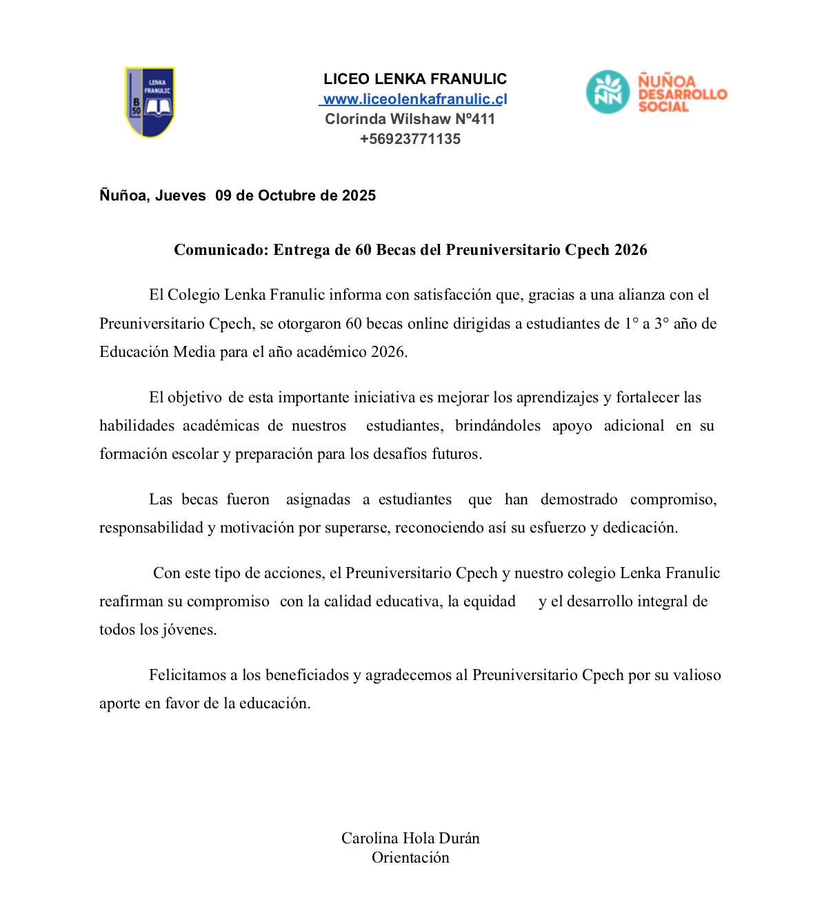 NOTICIAS COLEGIO LENKA FRANULIC 2025