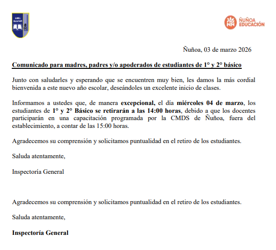 COMUNICADO OFICIAL INICIO AÑO ESCOLAR 2026