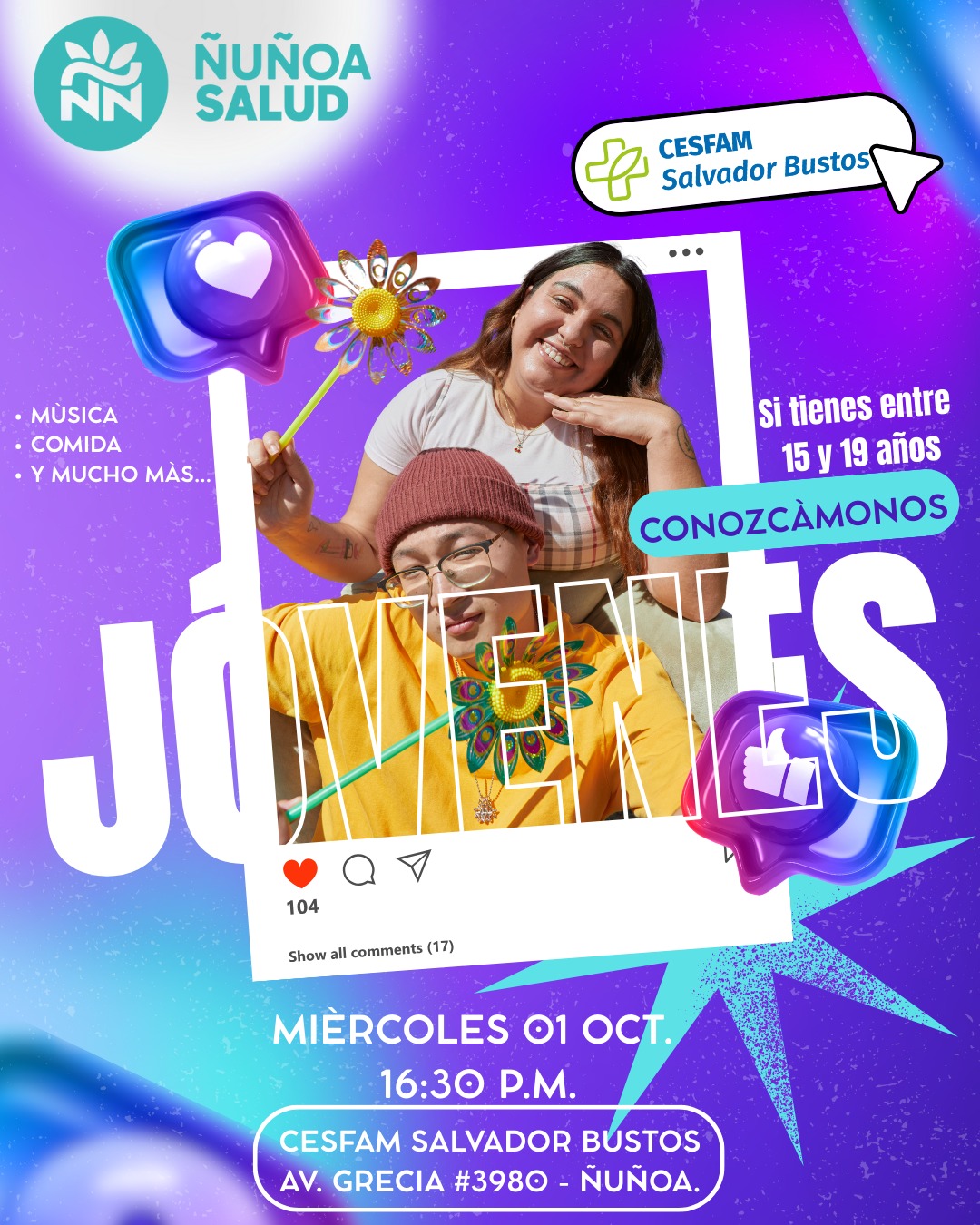 El CESFAM Salvador Bustos de Ñuñoa invita a todos los adolescentes de la comuna, entre 15 y 19 años, a participar en una jornada especial para la juventud.